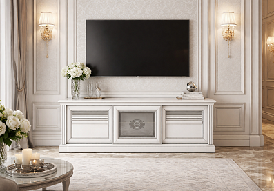 Тумба Изотта под телевизор с раздвижными дверцами Белый премиум ST24 (древесные поры)