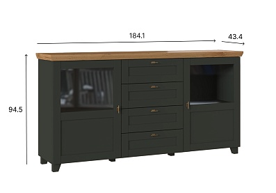 - Комод укомплектован 2 полками ЛДСП за распашными дверьми и 4 ящиками.