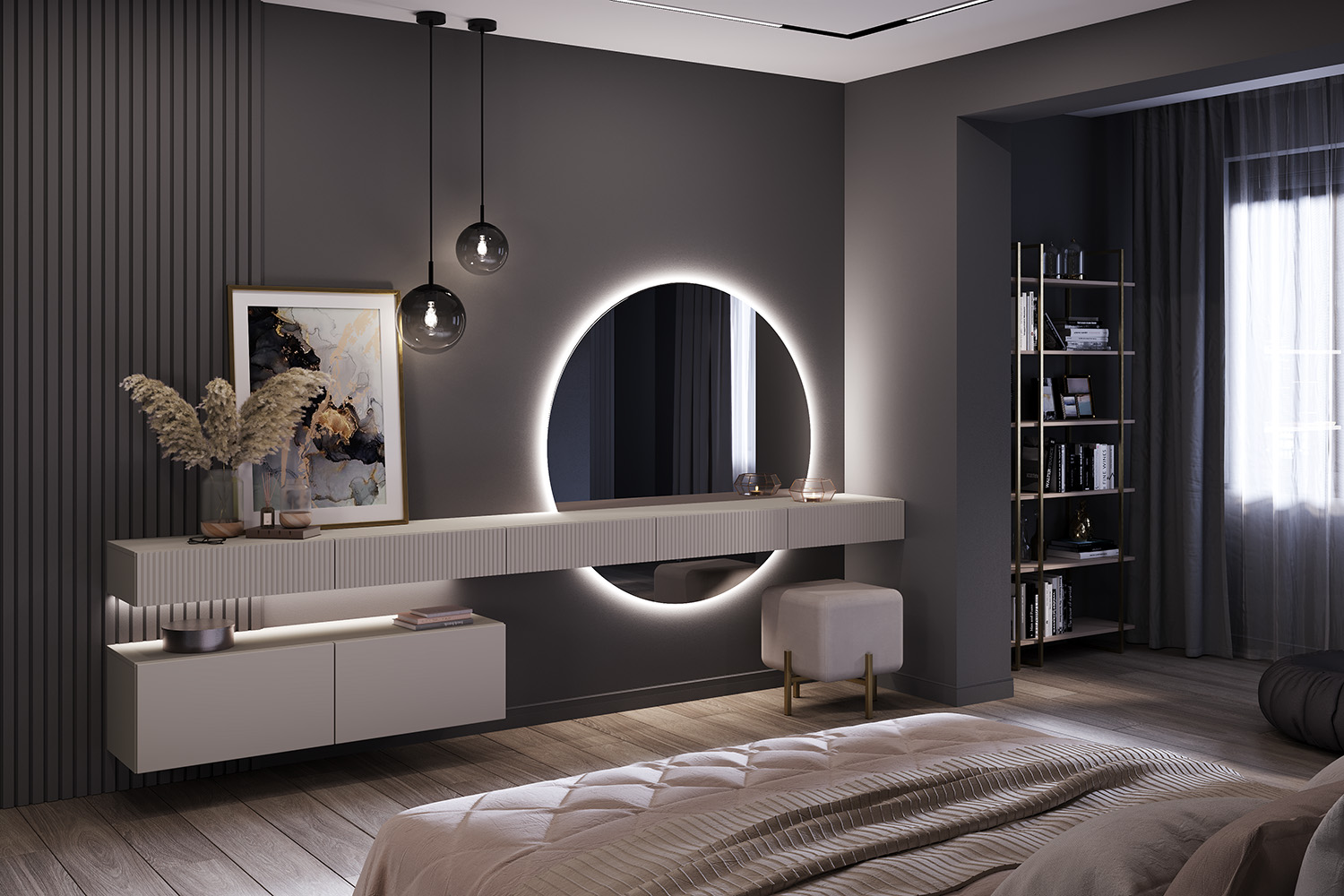 – описание: стиль современный, ар-деко, размер 16x180.1x37.1 см, цвет кашемир серый.
