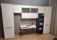 - Фасад: профиль МДФ в пленке ПВХ, вставка — стекло Stopsol бронза;